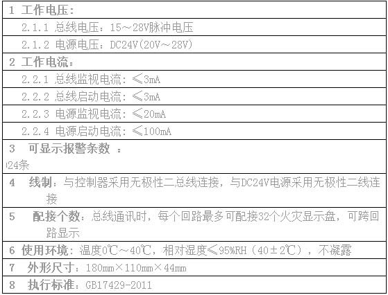液晶全中文显示,可与报警控制器同步发出声光报警信号,具有消音、上翻、下翻、查询四个操作功能键,回路总线接线方式